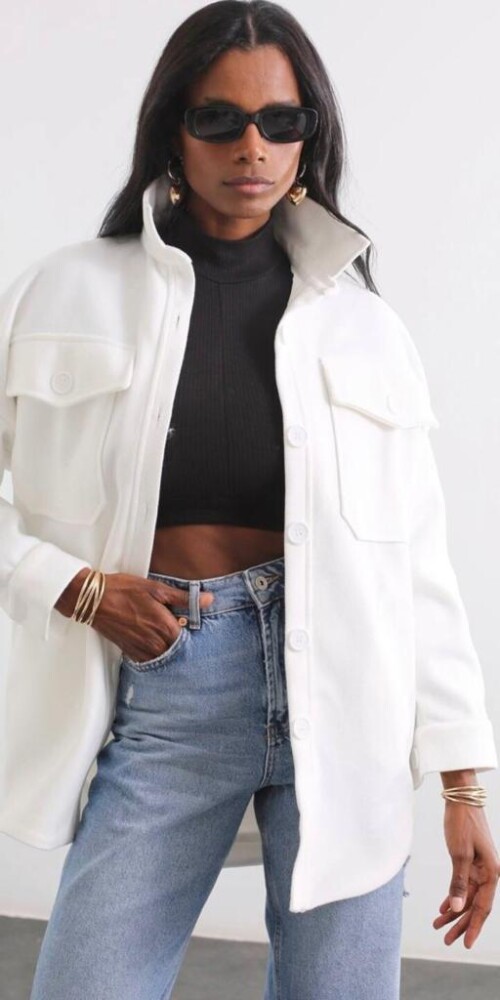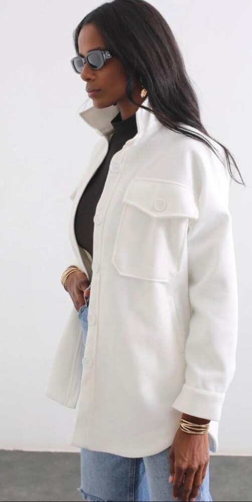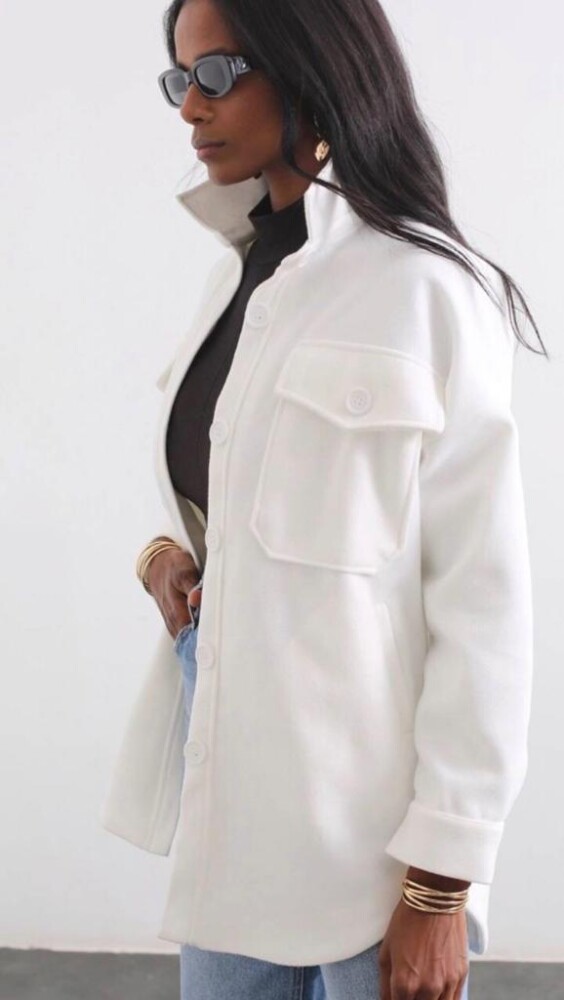 Χαλαρό κόψιμο για πλήρη ελευθερία κινήσεων. Μοντέλο με επένδυση. Κλείσιμο με κουμπιά. Χοντρό υλικό.
