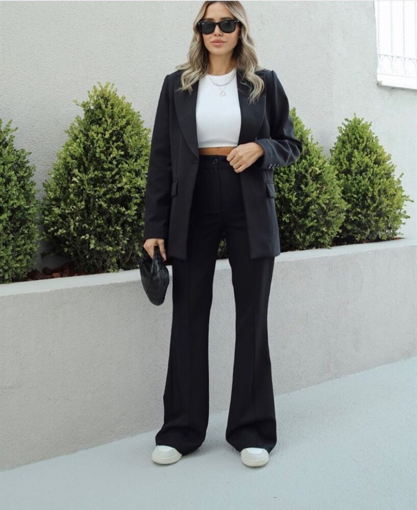 Το παντελόνι είναι καμπάνα και με ραφή μπροστά